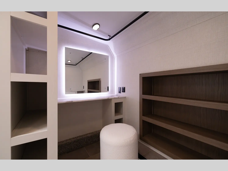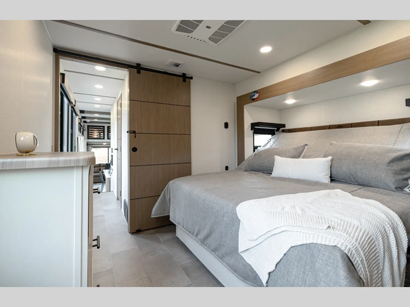 - 110 Outlet & 12V Charging Ports Beside Bed